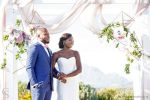Jumi and Tunde is a Nigerian couple living in London, who fell in love with the picturesque mountains and views of Cape Town. They set their hearts on Cavalli Estate and we started planning their wedding. Jumi loved the Pantone colours of 2016 and so we used this as the inspiration for their flowers and décor. Initially we thought that we would struggle to plan a Pantone 2016 wedding in 2018, but we had so much fun! Jumi’s ideas were easy to incorporate and everything seemed to come together beautifully.