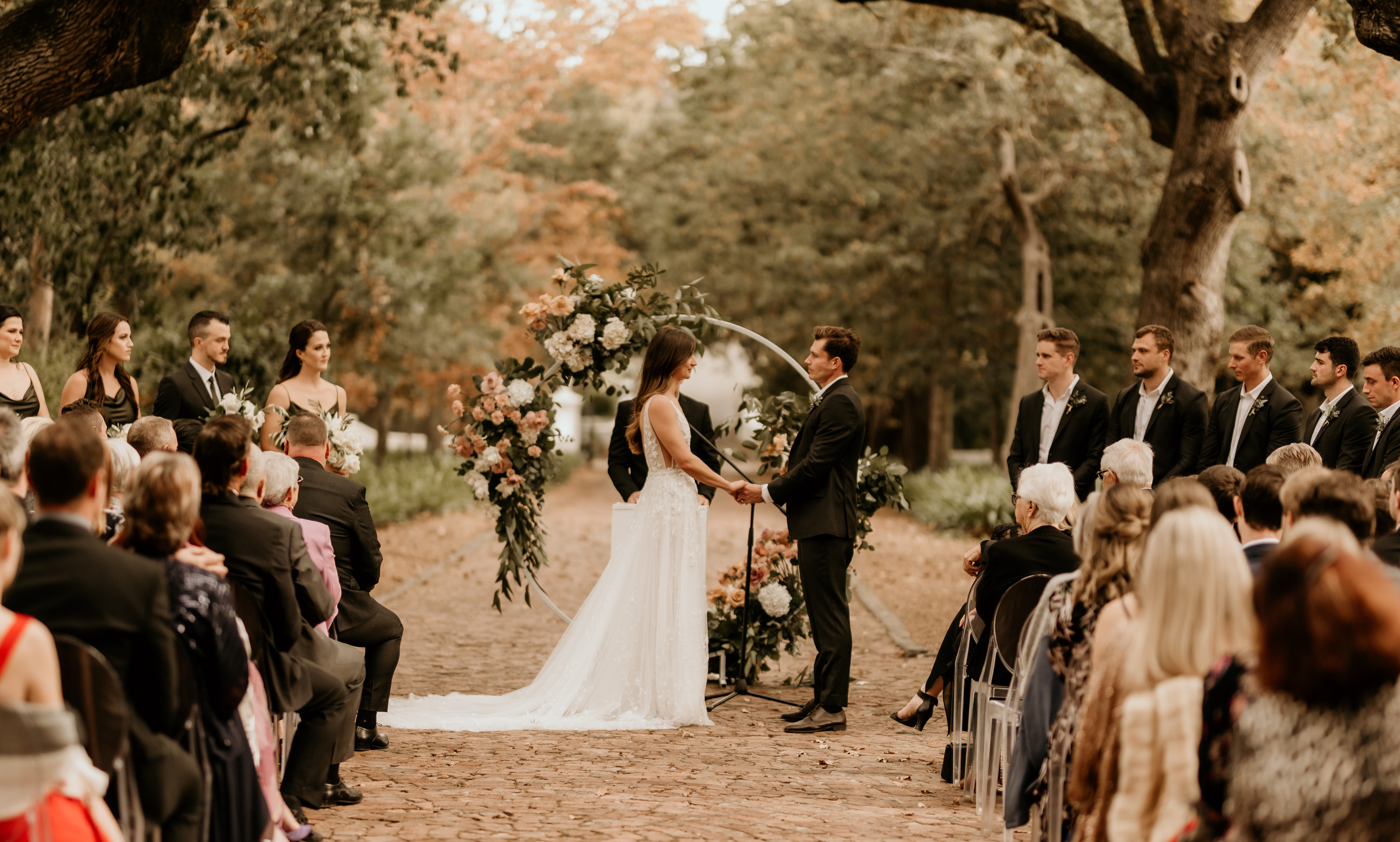 Nooitgedacht is one of those venues that have so much to offer in terms of different spaces and areas that you can utilise, but the bride had her heart set on a ceremony in the lane. This is also one of our favourite ceremony spots, with the trees so perfectly framing the sacred moments and providing enough shade for guests to be comfortable.