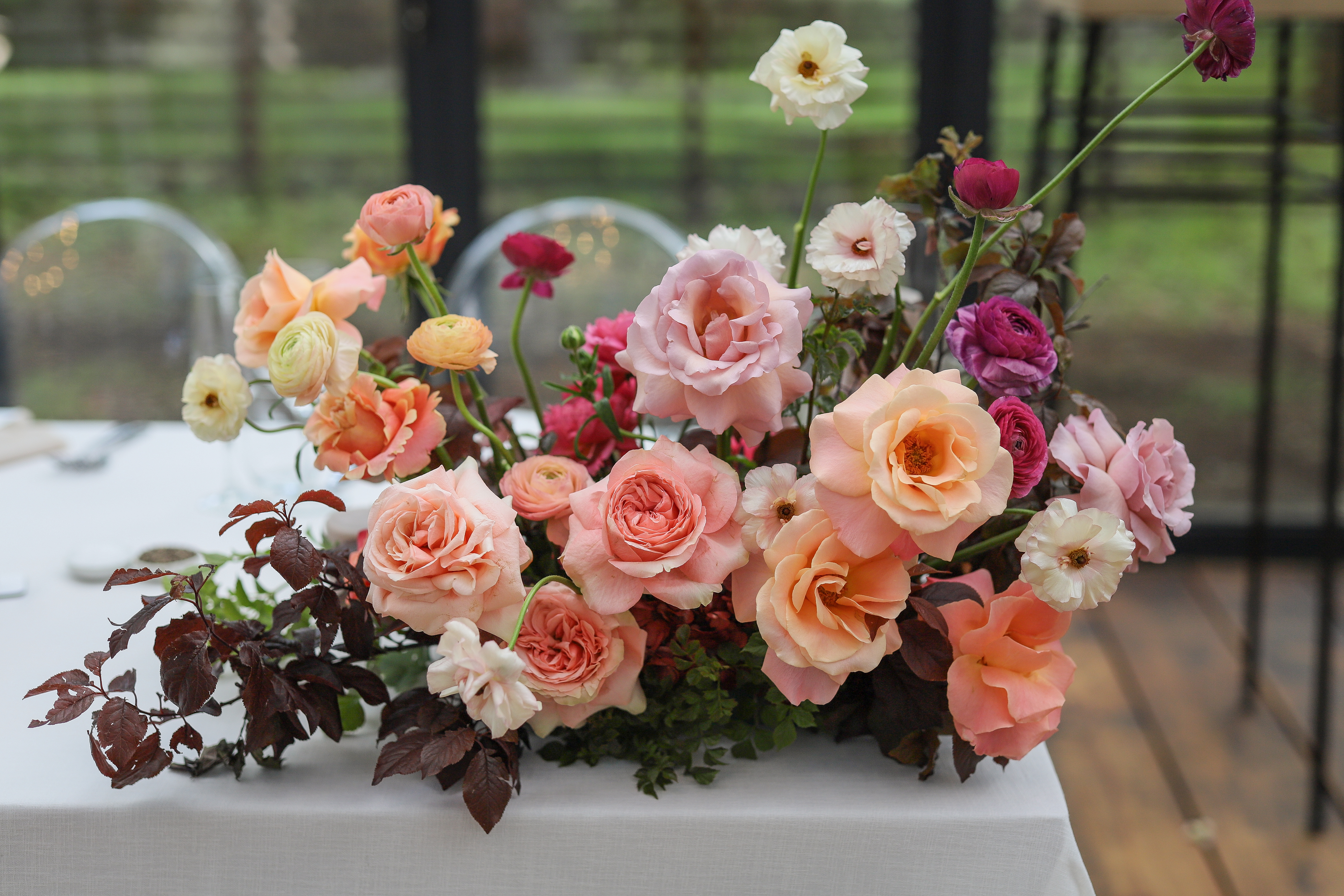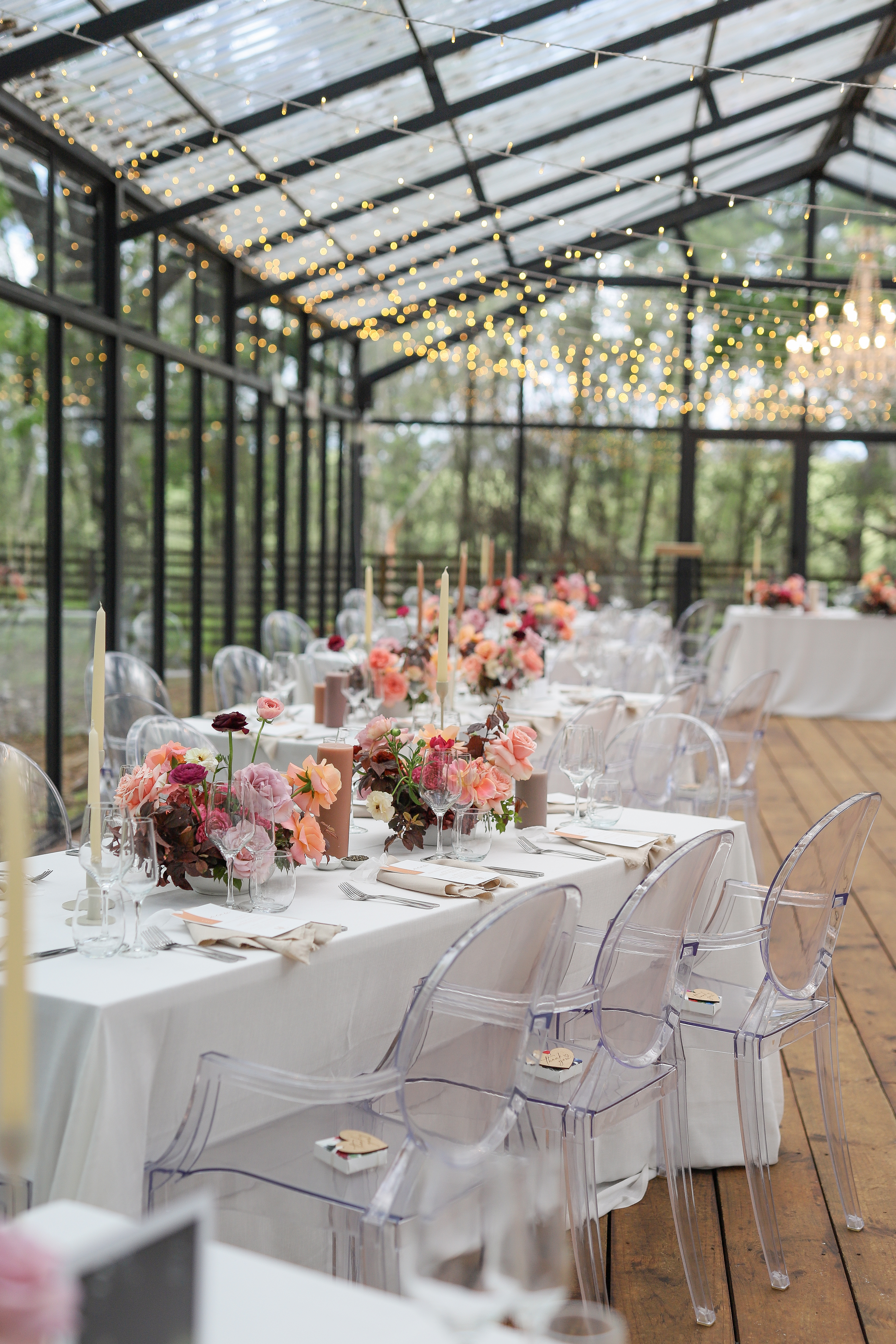 Despite a spot of rain on the morning of the wedding, the day turned out crisp and clear. The cool breeze beautifully complimented the autumnal colour palette and guests enjoyed sitting by the fires under the night sky.